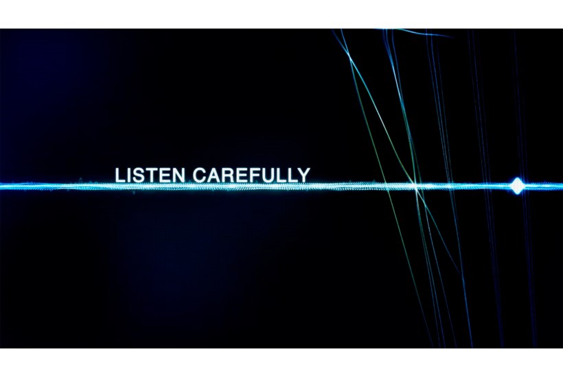 So I had to watch on my own. I do understand the Fawn’s objections. Really, it’s more like radio than TV and might work better enlivening a long car journey. There are no attractive images to look at — no actors or scenery or anything like that — just random electronic squiggles and snatches of text, spelling out the muffled, often hard-to-decipher phone conversations being played out before you.