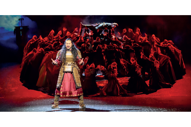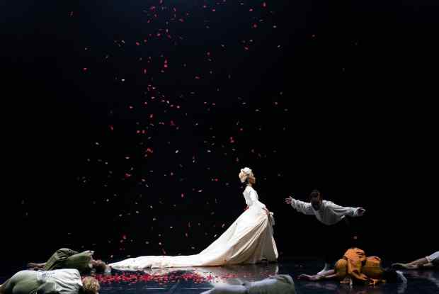 A breakneck montage of sirens and Bollywood scarves rockets us towards a side-splitting finale that loops in every character who’s yet appeared, from cheerleaders to cultists to King Kong. Silliness and brutality jostle for position as the action — performed in scrupulous slow motion — descends into chaos, guns (and violins and frying pans and other makeshift weapons) blazing. It was hard not to feel awed by the coordination at work. The stagehands must have been sweating as hard as the dancers to pull this off.