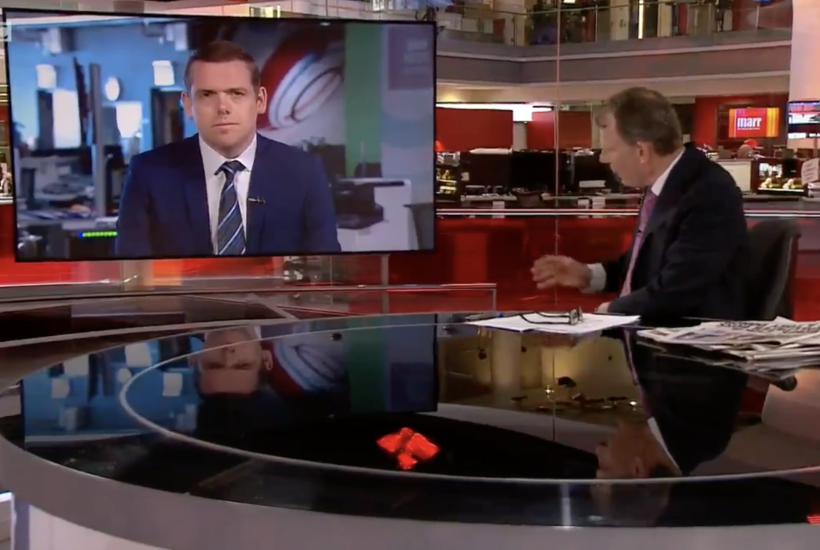 Andrew Marr’s first guest of the day was Douglas Ross, the leader of the Scottish Conservatives. With potentially crucial elections being held all across the UK next week – including to Holyrood – the row about the Prime Minister’s arrangements to pay for the refurbishment of his Downing Street flat continues to rumble on. Marr asked Ross if he thought Boris Johnson should consider his position if the Electoral Commission finds him to have broken the Ministerial Code over the issue: