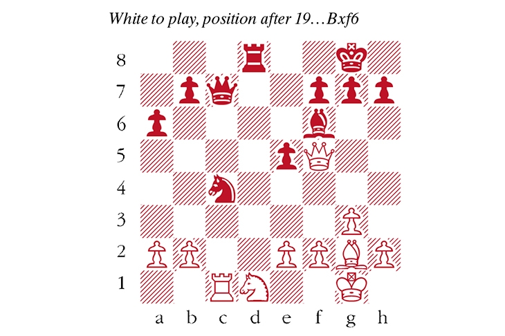 1 c4 Nf6 2 g3 e6 3 Bg2 d5 4 Nf3 dxc4 5 Qa4+ Nbd7 6 Qxc4 a6 7 Qc2 c5 8 Nc3! The automatic 8 O-O allows Black to prepare Bc8-b7 with 8…b5, as the discovered attack 9 Ne5 yields little after 9…Nd5. White’s move 8 Nc3 is more precise, as now 8…b5 9 Ne5 Nd5 10 Nxd5 Nxe5 11 Nf6+! wins rook for knight. 8…Be7 9 O-O O-O 10 d4 cxd4 11 Nxd4 Qc7 12 Rd1 Rd8 13 Be3 The clean pawn structure looks innocuous enough, but on closer inspection Black has severe difficulties in developing his pieces, especially the Bc8. The b7-pawn is pinned, while Ra8-b8 and b7-b5 only invites Nd4-c6. Moving the Nd7 (to prepare Bd7) suggests itself, but where to? Placing it on e5 allows a pin with Be3-f4, while 13…Nd7-c5 permits 14 Na4!?, since Bd7 15 Nxc5 Qxc5 16 Qxc5 Bxc5 17 Nxe6! wins a pawn. On f8, the knight is passive while on b6, as in the game, it soon becomes vulnerable to tactics from the bishop on e3. 13…Nb6 14 Rac1 e5 As the game shows, this critically weakens the light squares, particularly d5. But there was nothing better, e.g. 14…Bd7 15 Qb3! threatens Nc3-d5 or Nd4xe6, and Black’s position would collapse after 15…Nc4 16 Nb1! Rac8 17 Bxb7. 15 Nf5 Bxf5 15…Bf8 16 Qb3! Bxf5 17 Bxb6 Rxd1+ 18 Rxd1 Qe7 and now simply 19 Be3 Rb8 20 Qb6 looks likely to win a pawn. 16 Qxf5 Nc4 17 Bg5 Rxd1+ 18 Nxd1 Rd8 19 Bxf6 Bxf6 (see diagram) 20 Be4! Very awkward for Black, as 20…g6 drops the bishop on f6. Note that 20 b3? Ne3!! would turn the tables completely. 20…Qa5 21 Nc3 Kf8 22 Nd5! Clever. Now 22…Rxd5 23 Bxd5 Qxd5 24 Qc8+ picks up the knight on c4. 22…b5 23 Qxh7 Rxd5 24 Bxd5 Qd2 25 Rxc4 bxc4 26 e4 This mighty bishop on d5 enables an easy harvest of pawns in the coming moves. 26…Qxb2 27 Qh8+ Ke7 28 Qc8 Qb6 29 Qxc4 Qb5 30 Qc7+ Qd7 31 Qc5+ 31…Qd6 32 Qa7+ Qd7 33 Qxa6 leaves White two pawns up with complete control, so Black resigns