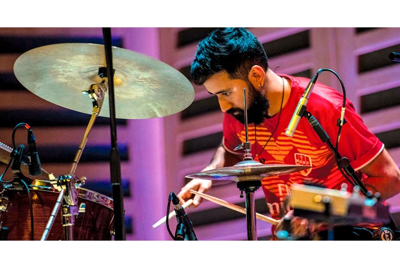 Three hours later, a bus ride away, and it was Sarathy Korwar, an Indian jazz drummer with a three-piece band and an occasional vocalist. Korwar’s music is about identity, or misrepresentations of identity. His music is not for purists of any kind: his brilliant 2019 album More Arriving featured the Indian rapper Prabh Deep, among others; he is happy to mix hip-hop, Indian folk music, jazz and space rock in the same piece. And he’s very alert to the box people want to put him in: a couple of years ago he told me that white audiences are very keen on ‘eight-headed gods and local percussion, but that’s not the reality for a lot of people in India’. On ‘Bol’ the vocalist Zia Ahmed intoned: ‘I am Shiva, Al-Qaeda/ I am auditioning for the role of Terrorist 1/ Yeah, I can do that in an Arabic accent.’