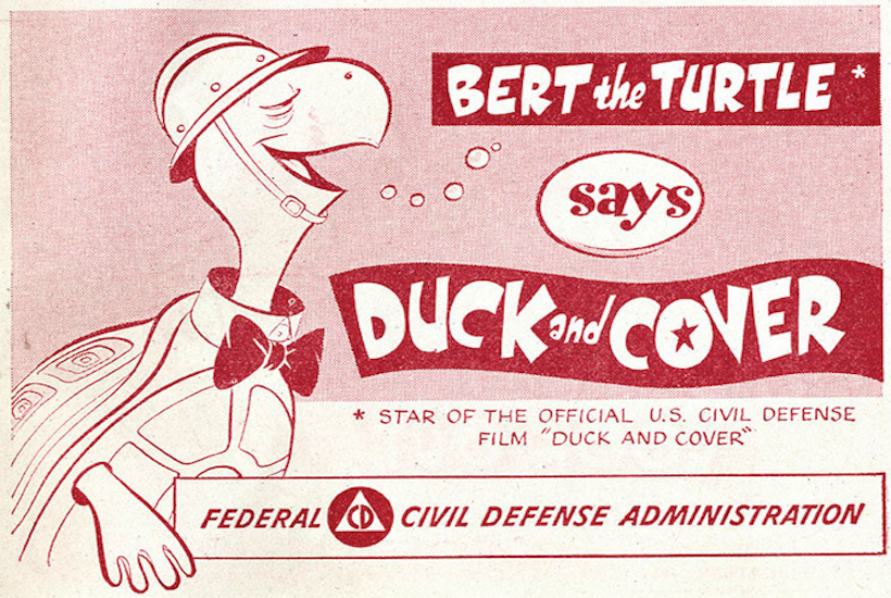 Get that? Duck and cover. Just like those handy and every so helpful early Cold War public information films on how to survive a Ruskie attack, duck and cover.