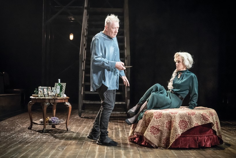 But these faults don’t detract from the beating heart of this production — McKellen. As soon as he appears, the age gap vanishes and the spirit of Hamlet comes bodying forth. A sensational performance, crisp, unpredictable, witty, noble, silly, humane. What a range of effects and moods. Riveting to watch. Mathias adds a couple of deft touches at the end. Gertrude arrives in a state of advanced drunkenness to watch her only son take on Laertes in a lethal duel. And Hamlet dies in the vertical position, propped up by Horatio. His exit line, ‘the rest is silence’, can be heard for a change, and his tragic expression seen. Those innovations should be incorporated in all future Hamlets.