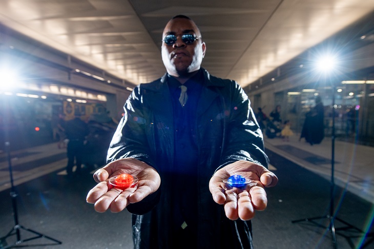 The first Matrix’s ‘Red Pill’ had been appropriated by the right as an analogy for political awakening, which must have been galling for the Wachowski siblings. When the trailer showed a cascade of blue pills, heavily leveraging a scene which was actually quite minor in the original movie, I wondered … were they going to reverse the original message, and take Cypher’s position that ‘ignorance is bliss’?