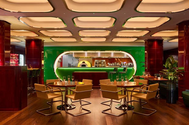 The prices are insane: £87 for a plate of seafood for two; £39 for a dozen oysters; £89 for a roast chicken; £39 for a veal chop. The drunken seem pleased to pay it, and shout happily. But though the room is bustling, it is not well run, which is something you could never say about La Coupole, even if it is mythical. (Of course, mythical restaurants are better. They do not exist.) There are too many diners and not enough staff. Our waiter does his best, but he seems to be caring for — or attempting to — perhaps a third of the tables. Or perhaps two women dressed as tarmac do not deserve the same attention as four men dressed as men. The food, meanwhile, cannot be called anything other than repulsive. It is, I think, in ten years of restaurant reviewing, perhaps the worst food I have had. The spinach soufflé is a damp, green thing, served with an evil yellow sauce precisely the colour of the ‘cheese’ in a McDonald’s burger. The ‘bangers and mash’ is a ghastly curl of over-spiced meat of many kinds on a lick of mashed potato, with a dense and inedible sauce. The Jerusalem artichoke risotto is all wrong: halloumi cheese sits in it, pondering its future. We do not bother with pudding — or rather we buy it at Marks & Spencer next door.