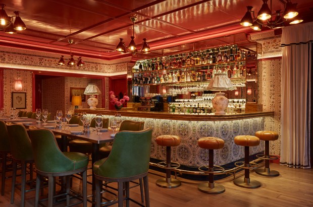 This is his other house. And, like La Coupole, which calls itself ‘mythical’ on its website — is the food then mythical too? — Langan’s is still self-involved, existing on the fumes of the past. It still has plates with Langan’s name on; if you seek his memorial, look down. Around these curios is a vast and handsome room on Stratton Street, with mad art, pale walls, marble floors and Murano chandeliers. It is, on a Friday evening, filled with shouting people getting very drunk. I don’t mind people getting very drunk — why would I? — but I believe, at these prices (Hockney’s menu has chocolate mousse for £1.20 and rice pudding for £1, but that was long ago) they deserve a better song than this.
