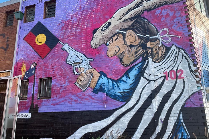 In inner-city suburbs of Australia, I’ve seen murals where the Australian flag is being shot and lit on fire.