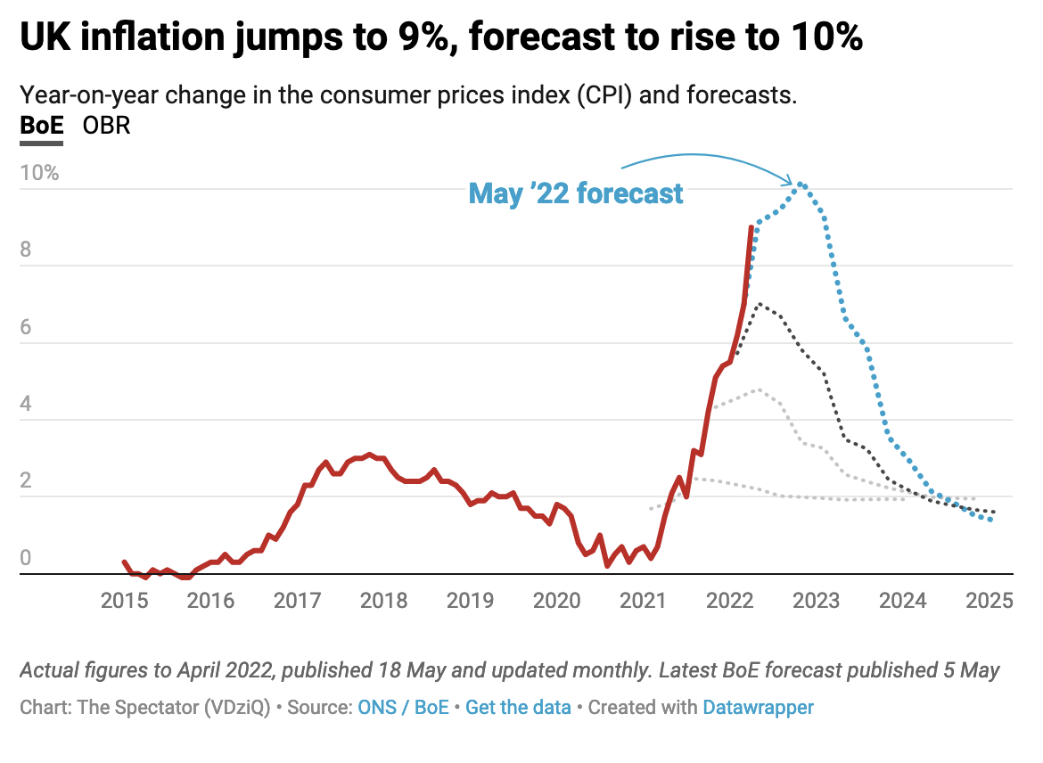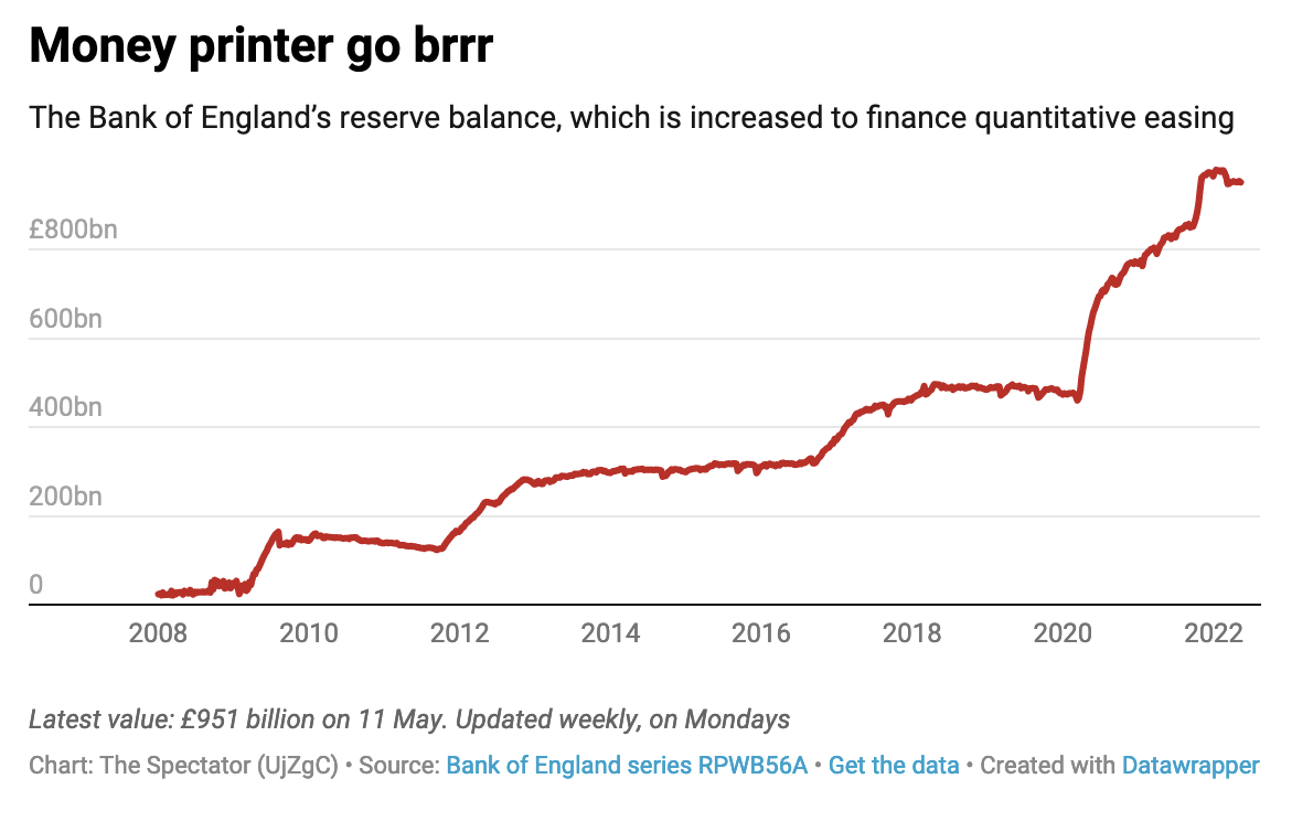 Some £500 billion was printed by the Bank of England during the pandemic – a staggering sum that caused very little public debate. Those sceptical about so-called ‘quantitative easing’ argue that it causes inflation – and with today’s news that inflation rose 9 per cent on the year in April, is anyone linking the two? Step forward Mervyn King, former governor of the Bank of England, who was surprisingly critical when speaking to Andrew Marr on LBC last night.