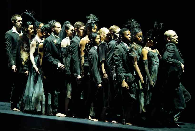 In the evening’s centre comes Ben Duke’s whimsical ‘meta-comedy’ Cerberus. There’s a lot of spoken dialogue here, handled with aplomb by Antonello Sangirardi and Alex Soulliere, but not much in the way of dancing – the premise being that a member of Rambert (Aishwarya Raut) has gone missing and is presumed dead, but is perhaps only lurking in her dressing room. In an expedition with echoes of Alice in Wonderland and L’Ange exterminateur, the troupe set out to brave the guardian dog Cerberus and visit the underworld to find her, tied together on a long rope. I quite enjoyed the silliness of it all, especially as it didn’t drag on or make any claims to profundity.