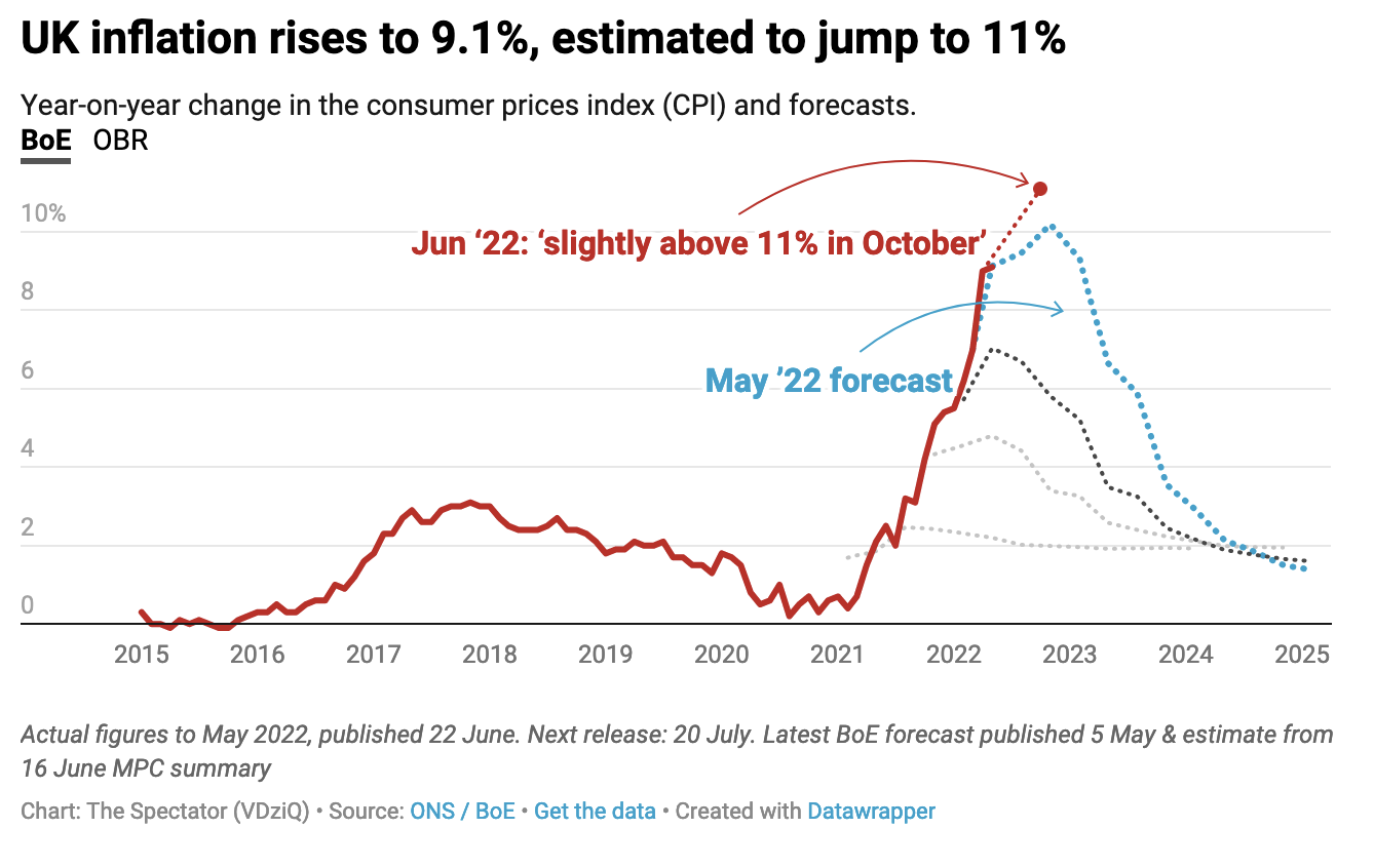 The Bank of England certainly thinks inflation is transitory. According to the Bank, inflation should be back to 2 per cent by June 2024, predicated on the assumption that energy prices fall back down to normal levels soon. It’s a huge gamble (the Bank has called it wrong before) and relies on western allies such as Saudi Arabia agreeing to play ball when it comes to pumping more oil (hence why Biden is visiting the Gulf state next month).