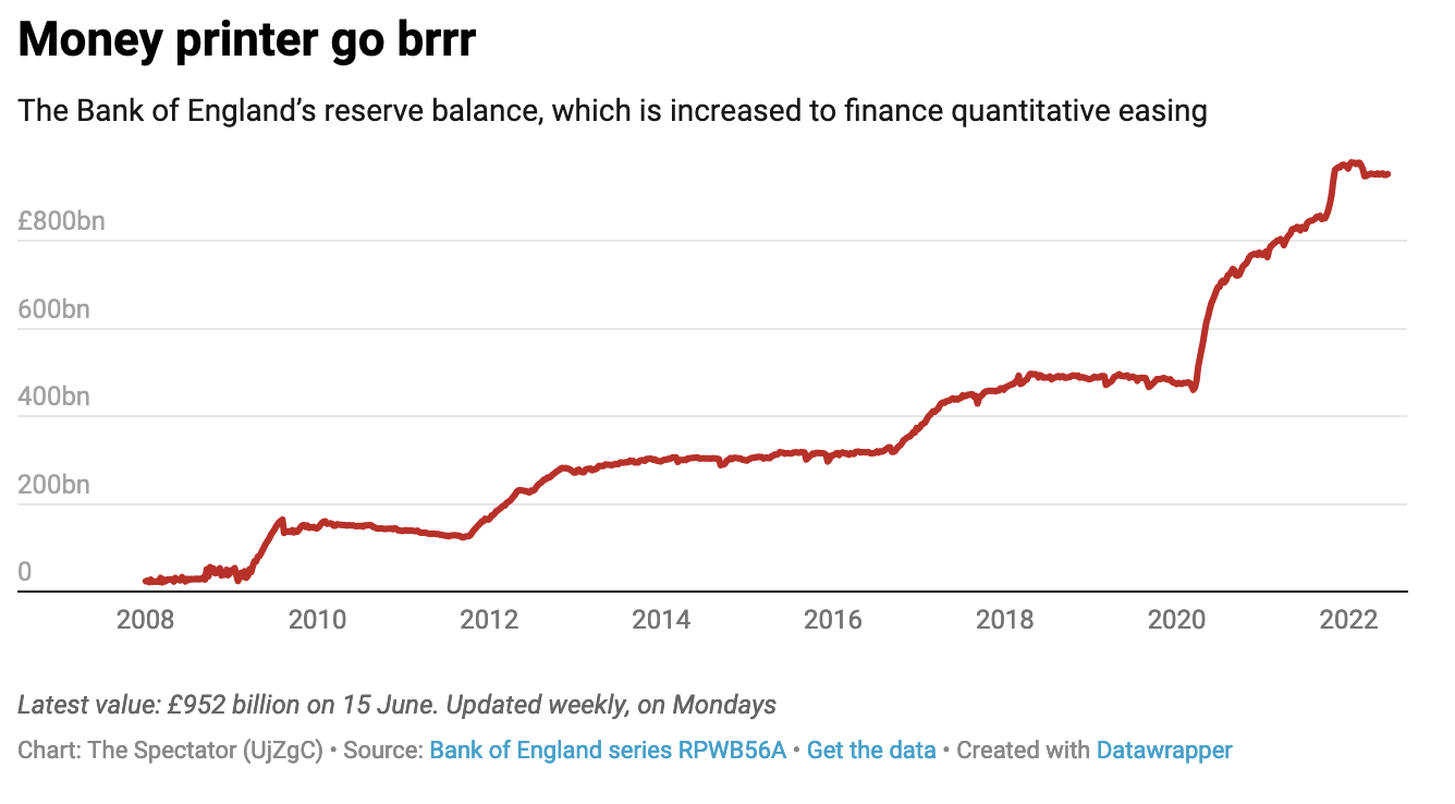 Such arguments also fail to account for a major culprit that has stoked inflation at home: money printing. As Mervyn King, the former governor of the Bank of England, has said, ‘The problem was that central banks… put a lot of money into the system.’ Post-2008 quantitative easing went to balancing government books; pandemic printing has been funnelled into the wider economy through furlough, loans, support packages and the rest.