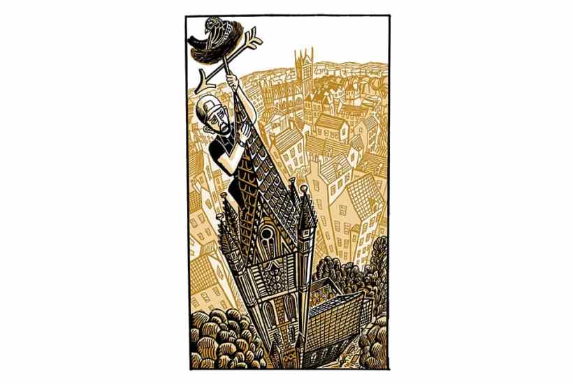 Done with care, he says, rope climbing is safer than working from a scaffold. But it’s still thrilling. ‘I love climbing church spires,’ he says. ‘As you progress up a church spire, the mass of what you’re climbing becomes smaller and smaller, and so you’re more and more exposed as you get up. It reduces up to nothing, and it never ceases to be exciting.’