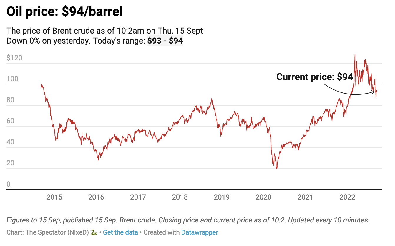Meanwhile falling fuel prices are being offset in the UK by rising prices for food and domestic services. Core inflation – which excludes energy and food costs – rose from 6.2 per cent on the year in July to 6.3 per cent in August. The CPI all services index rose too: from 5.7 per cent on the year in July to 5.9 per cent in August — a reminder that the UK’s historically low unemployment rate and record-high vacancies may be putting off ‘stagflation’, but they are causing plenty of problems too. The UK’s painfully tight labour market is causing the costs of domestic services to rise sharply, piling on top of the other price increases for businesses (energy, food) that are also being passed on to consumers.