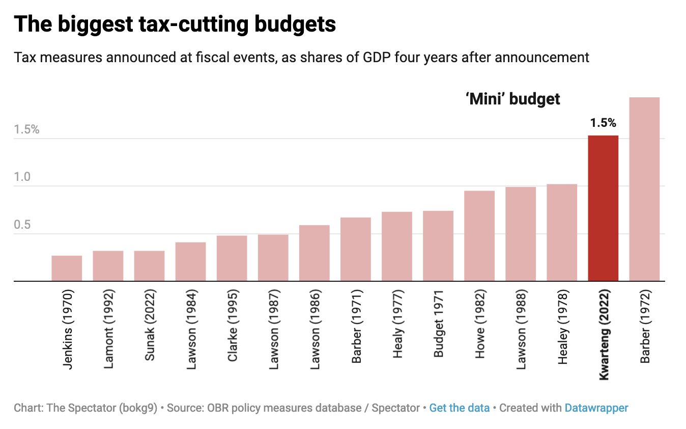 Kwasi Kwarteng and Liz Truss are a Chancellor and a Prime Minister in a hurry, they know they have only got 18 months to get the economy growing if they are to win-re-election. So, they went all out in today’s non-budget Budget. Not only did they cancel the corporation tax rise and reverse the National Insurance increase but they abolished the higher rate of tax and brought forward the cut in the basic rate of income tax. This is all against the backdrop of an energy price guarantee that the Chancellor said would cost £60 billion over the next six months. This and the tens of billions of tax cuts will be paid for by borrowing; the government will borrow £72.4 billion more than it expected to in April.