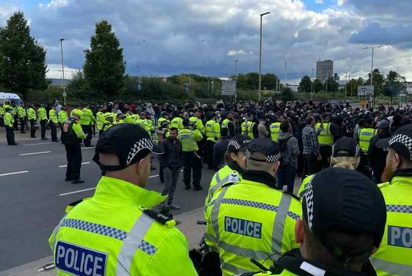 Last night’s disorder though suggests the problem isn’t going away yet. On Saturday a large group of Hindu men protested in the city, with some shouting ‘Jai Shri Ram’ – a slogan which has increasingly been used by Hindu nationalists in India. Muslims came out onto the streets of Leicester as well, with videos showing the police struggling to keep the two crowds apart. In the evening a Hindu temple on Melton Road was vandalised. Someone climbed up on the roof to damage its saffron flag.