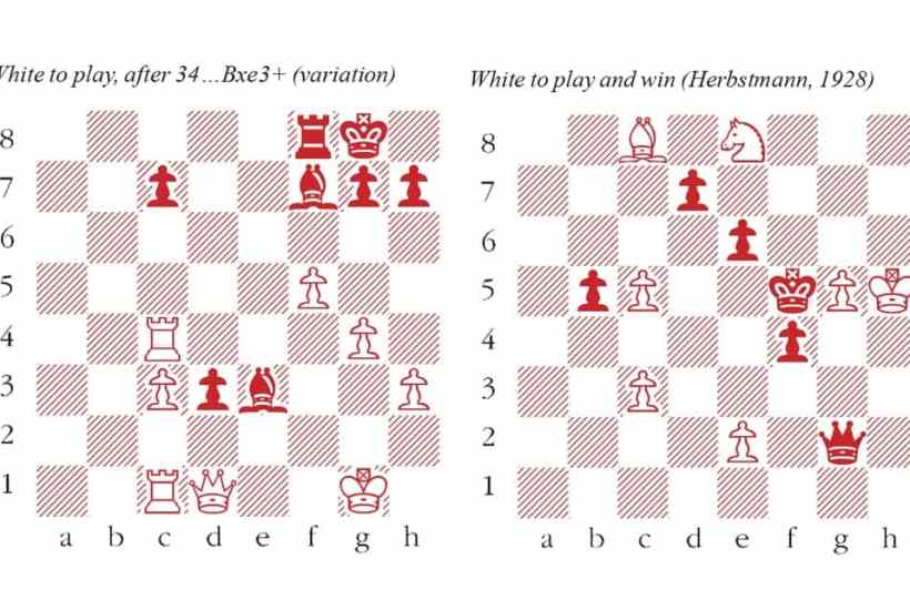 Switchbacks and counter-checks often find a delicate setting in composed problems. For the former, I’m fond of the problem shown in the second diagram. White to play and win, composed by Herbstmann in 1928 (see right game).