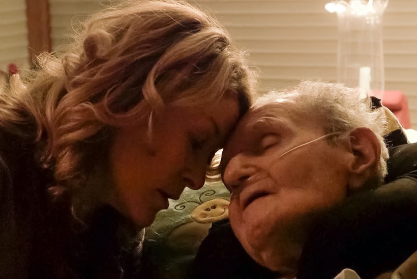 He is brought back home to his and Lisa’s modest house in Pasadena where the rest of his devoted family gather. There’s Ondi’s two siblings (David, a film and TV editor, and Rachel, a rabbi) and various grandchildren. Even though Eli can barely open his eyes, he is totally charming, totally sharp, and totally devoted in return. ‘Are you scared?’ he’s asked. No, he says. ‘I truly believe I’ll be up above looking over my wife and my children, and protecting them.’ He gives advice to one of his (weeping) grandchildren: ‘Respect the people you don’t know and love the ones you do.’