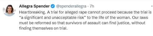 In an extraordinary statement to the press, Drumgold claimed the decision was made after he received compelling medical evidence of mental health risks to Higgins of continuing with the prosecution. Higgins is now apparently receiving care in a hospital in Queensland. Drumgold commended Higgins for her ‘bravery, grace, and dignity’.