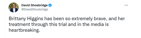 Never a word, of course about the impact on Bruce Lehrmann, and his bravery and dignity in dealing with the assaults on his reputation over the last few years and during the trial. Never one word from our media about the impact on his mental health.