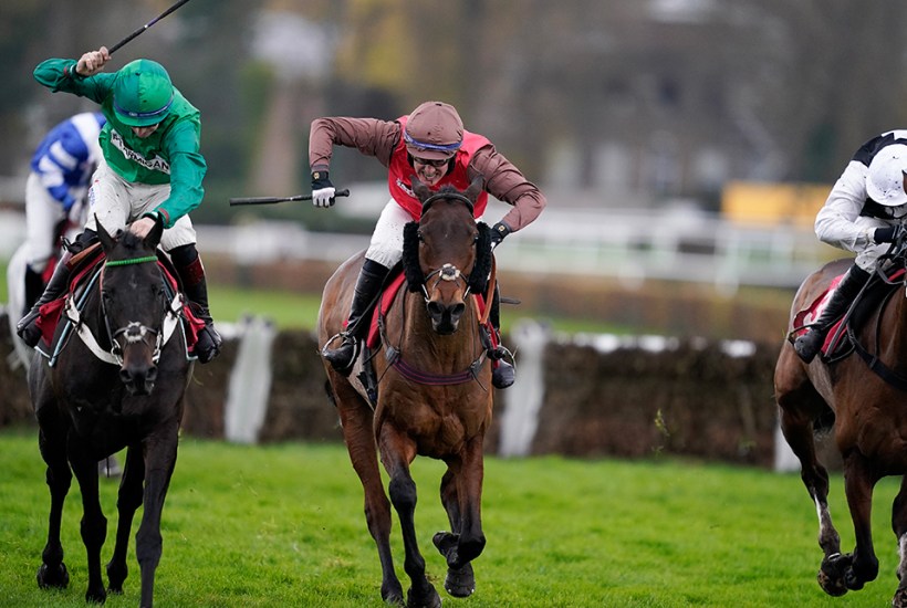 I am not on familiar terms with many property developers but I would guess that most of them don’t make the sort of money he must do by spending all their time helping old ladies across pedestrian crossings. For all I know, in private life David might be a climate change denier, a guy who gets his kicks by listening to Meghan Markle podcasts or a collector of tarantulas. But on the racecourse the pros respect him as a safe and sensible if determined competitor. Racecourse crowds can sniff a Good Egg when they come across one and they cheer his good days, like Dolphin Square’s victory at Cheltenham in the Paddy Power hurdle, with a special fervour. They know he’s had the tough ones too, scraped up off the floor and dumped in A&E, and they applaud the ultimate trier.