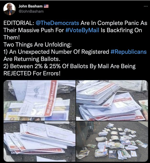 And then, we hit the pièce de résistance: the FBI sending reports about tweets to Twitter to moderate. The second tweet reported by the FBI was published by John Basham, former Republican Councillor of Tippecanoe County, Indiana, which claimed ‘between 2 per cent and 25 per cent of Ballots by Mail are Being Rejected for Errors’. Here’s the tweet in question: