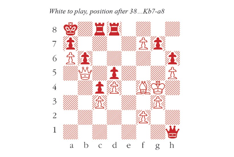 39 f8=Q Rxf8 40 Qd7 Rxf4+ The only defence, but a good one. 41 gxf4 Qg2+ 42 Kh4 Qxf2+ 43 Kg4 Qg2+ 44 Kh4 g5+ A clever trick to chase White’s king in a different direction. 45 hxg6 Qh2+ 46 Kg4 h5+ 47 Kf3 Qh1+ 48 Kf2 Qh4+ 49 Kf3 Allowing the exchange of queens, but there was nothing better. Qg4+ 50 Qxg4 hxg4+ 51 Kxg4 With an extra rook, it is a miracle that Black must still be accurate to win the game. b5 52 f5 b4 53 f6 bxc3 54 f7 c2 55 g7 c1=Q 56 f8=Q Two new queens, and a new set of problems. How to finish White off? Qg1+ 57 Kh5 Qh2+ 58 Kg6 Qg3+ 59 Kh6 Qh4+ 60 Kg6 Qg4+ 61 Kh6 c3 62 Qf7 Qh4+ 63 Kg6 Qe4+ This was the moment to seal the deal with 63…Rc6+! 64 Kf5 Qf2+ and 65…Qxf7 64 Kg5 Qe3+ This throws away the win, but by now only the precise 64…Rb8! suffices to win, with the idea 65 g8=Q Qg2+ 65 Kh5! Qe8? A tragedy, all the more so for looking like it wins on the spot by forcing a queen exchange. 66 g8=Q! The final twist. 66…Qxg8 67 Qb7 is mate. Black is lost. Qe2+ 67 Qg4 Rh8+ 68 Kg5 Qe3+ 69 Kf6 Qh6+ 70 Ke7 Qc6 71 Qgg8+ Black resigns