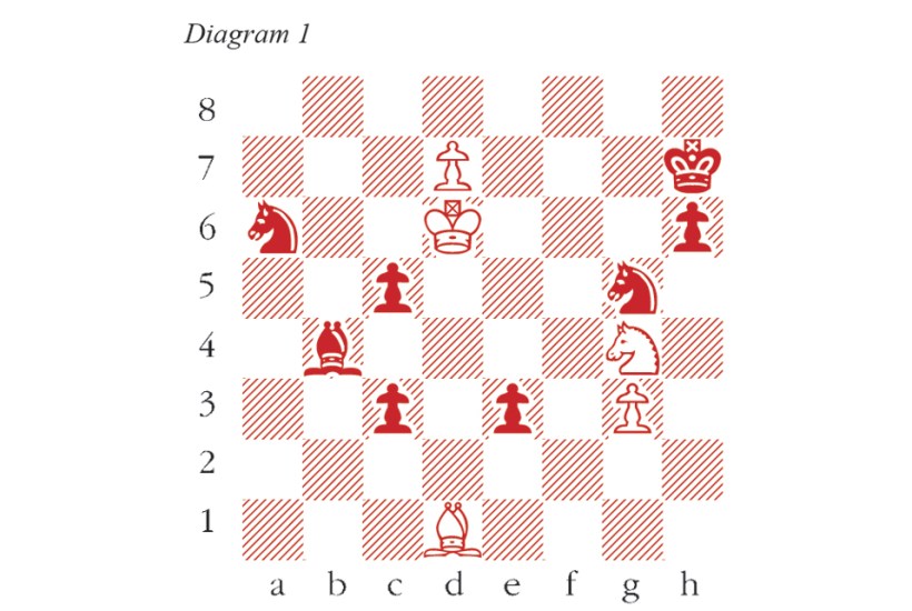 White to play and win. The pawn on d7 has nearly risen above its station, but White must not allow 1 d8=Q Nf7+. Hence 1 Nf6+ Kg7 Not 1…Kg6 2 Bh5+ which prevents Nf7+ so White can promote next move. 2 Nh5+ Kg6 Not 2…Kh7 3 Bb3, and White promotes with check after the king retreats. 3 Bc2+ Kxh5 4 d8=Q! Now is the moment. Nf7+ 5 Ke6 Nxd8 6 Kf5 The uppity peasant is slain, but the Black king finds himself held at the devil’s mercy. White threatens Bc2-d1 mate. So, e2 7 Be4! e1=N (the only way to prevent Be4-f3 mate). 8 Bd5 An even more extraordinary circumstance. There is no immediate threat, other than the oblique Bd5-c4-e2+ with mate to follow. But the Black cavalry is hypnotised, and there is only one defence. 8…c2 9 Bc4 c1=N Just in time to prevent Bc4-e2, but the bishop’s machinations are not yet finished. 10 Bb5 Nc7 (to prevent Bb5-e8+) 11 Ba4! Thomas Becket’s vengeance. The four knights are impotent to prevent Ba4-d1 with mate soon to follow. Black resigns