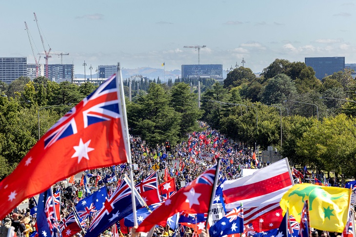 I couldn’t make it to the biggest rally of them all, the Convoy to Canberra on February 12, 2022 but I watched via live feeds from independent journalist Rukshan Fernando and Avi Yemini from Rebel News. Inspired by Canada’s Trucker Convoy this rally attracted people from Australia-wide. It was reportedly the largest peaceful rally in Australia’s history with in excess of 200,000 people. Freedom movement heroes like Reignite Democracy’s Monica Smit, ex-Qantas Captain Graham Hood (Hoody), ex-paramedic John Larter, and ex-school teacher Christian Mack attended as did former MP Craig Kelly, and Senators Gerard Rennick, Pauline Hanson, and Malcolm Roberts.
