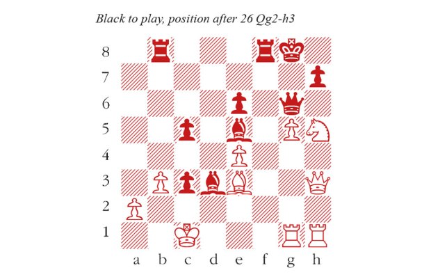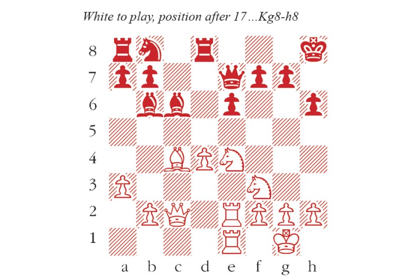 1 d4 Nf6 2 c4 e6 3 Nf3 d5 4 Nc3 Bb4 5 Bg5 h6 6 Bxf6 Qxf6 7 e3 O-O 8 Rc1 dxc4 9 Bxc4 c5 10 O-O cxd4 11 Ne4 Qe7 12 a3 Ba5 13 exd4 The isolated queen’s pawn is a double-edged sword. Lacking defenders on adjacent files, they can become weak in the long run. But in this middlegame, the latent possibility of advancing d4-d5 to open more lines of attack proves to be the more significant factor. Rd8 14 Rc2 One would usually be content to have this rook already deployed on an open file. But Giri’s clever little rook move foresees that planting both rooks opposite the black queen poses difficult practical problems. Bd7 14…Nc6 is a decent alternative, when I suspect that Giri intended 15 Ba2, whereupon 15…Bb6 16 Rd2 demonstrates another perk of his rook manoeuvre. Black must then contend with ideas of Rf1-e1 and d4-d5. 15 Re2 Bc6 16 Qc2 Bb6 17 Rfe1 A powerful move, since the d4 pawn is poisoned. Kh8 (see diagram) Gukesh surely looked at 17…Bxd4 18 Neg5! hxg5 19 Rxe6! fxe6 20 Rxe6 with a devastating discovered check to follow, so his sidestep with the king could not be more natural. But the lesser evil was 17…Bd5 18 Bxd5 Rxd5 19 Nc3 Rd6 20 d5 Nd7. Still, the exchanges on e6 will leave Black with a weak e6 pawn and a thankless position. 18 Neg5! Giri’s attack is so powerful, it will succeed even without Black’s king on the a2-g8 diagonal. hxg5 19 Rxe6 fxe6 20 Rxe6 Qxe6 After other queen moves, White simply plays Nf3xg5, with overwhelming threats. 21 Bxe6 Bxf3 22 Qf5 Threatening mate (Qf5-h3+) recovers material in better circumstances than the immediate recapture. Be4 23 Qxe4 Rxd4 23…Re8 was more stubborn. After 24 h4 Nd7 25 hxg5 Rxe6 26 Qxe6 Nf8, the queen and pawns should triumph, but the game isn’t over. 24 Qf3 g4 25 Qf8+ Kh7 26 Bf5+ Kh6 27 Bc2 Black resigns in view of multiple threats, e.g. Qf8-h8+ or Qf8-f5.