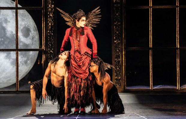 More conventionally satisfying is Gods and Dogs by Jiri Kylian, one of a trove of works he’s created for a company that he ran for nearly a quarter of a century. He describes it as ‘unfinished’ and an exploration of the terrain between normality and insanity, but it seems refreshingly low on concept and high on polish, charged with Kylian’s facility for making dance that is both virile and supple, elegant and muscular. Drawing on one of Beethoven’s Op. 18 string quartets and set against a shimmering curtain of gold beads, it was danced with passion by a cast of eight led by Pamela Campos and Cesar Faria Fernandes.