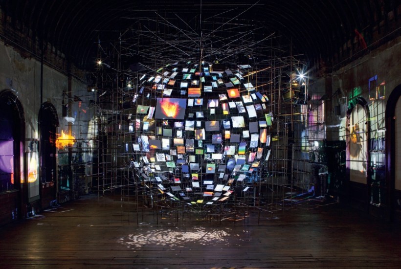It’s not Sze’s first commission for a travel hub: her multimedia sculpture ‘Shorter than the Day’ – a fragile sphere spangled with photographs of the New York sky at different times of day – was installed at LaGuardia airport last year. ‘Metronome’ belongs to the same Timekeeper series, the difference being that its images are moving. While Sze’s New York timekeeper appears to stop time, her London one – a hollow hemisphere dotted with blank pages on to which scraps of video are projected – appears to accelerate it. There are a lot of flames – candles, a roaring fire, a volcano and an orange sun rising (or setting in reverse) like a fireball – interleaved with brief glimpses of vegetation: combustion trumps photosynthesis in what feels like a doom loop. Animals appear trapped somewhere in between, an ostrich running endlessly on the spot and a grounded pigeon feebly flapping its wings. Framed by the bricked-up arches of the waiting-room windows, the swirling colours projected on to the surrounding walls are as seductive as a Chagall stained-glass window but more unnerving. The age of the smartphone, says Sze, has unleashed ‘an extreme hurricane’ of imagery – and knowing that pictures snapped by visitors to her installation will be joining an estimated five billion smartphone photos taken a day is not reassuring.