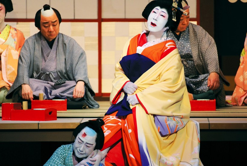 A decent stalls seat will generally set you back more than £100 – never mind the grand spent on your 14-hour flight – but things became easier for the kabuki fan this year when Shochiku, the 128-year-old company that manages and promotes Japan’s major kabuki theatres, introduced Kabuki on Demand. Its current screenings include a vintage 2009 performance of Chikamatsu Monzaemon’s 1703 work The Love Suicides at Sonezaki, featuring Ganjiro as the doomed oil salesman and his father, Sakata Tojuro IV, playing his fragrant teenage sweetheart at the age of 78. Multi-layered silks, a thick layer of whiteface and a vast repertory of simpers, sighs and nods transform the old man into the flower-like Ohatsu. When I first met father and son more than 20 years ago they were preparing to leave for a UK tour of The Love Suicides and I foolishly asked papa whether the women in his life informed his playing of teenage prostitutes. I was given very short shrift. ‘The whole thing is to idealise women: to make women who are more beautiful, more elegant,’ explained the officially designated Living National Treasure. ‘You don’t really look to other women for that.’ Ouch.