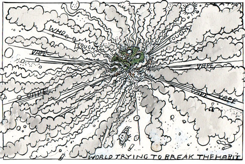 Smoke and vapour were conflated by King James I in his Counterblaste to Tobacco while arguing that smoking produced the very symptom its defenders claimed it relieved: phlegm. ‘Even as the smoakie vapours sucked up by the Sunne, and staied in the lowest and colde Region of the ayre, are there contracted into cloudes and turned into raine and such other watery Meteors: so this stinking smoake being sucked up by the Nose, and imprisoned in the colde and moyst braines, is by their colde and wett facultie, turned and cast foorth againe in waterie distillations, and so are you made free and purged of nothing.’ King James would see in vaping a confirmation of the theory that he embraced regarding cold and wet humours.