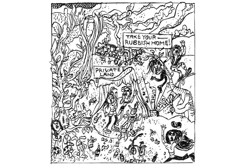 The irony is that we are all supposed to be straining to halt the climate emergency and the biodiversity crisis (see Monbiot, Packham et al). The woods now bristle with ‘regenerative’ cattle, posing yet another danger to campers turning up unannounced. Wild campers, who are by definition strangers, have no way of knowing whether the spot they have chosen to stake out is the last refuge of a natterjack toad or ghost orchid. If the authorities really thought about it, they would be supporting landowners and their attempts to channel the public on to paths and into campsites. Wildlife would then be disturbed as little as possible, and we would be less likely to suffer wildfires that turn our flora and fauna into atmospheric carbon.