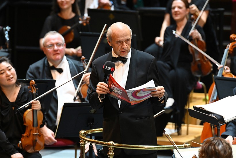 So the full orchestra basically winged it before our ears. In between, Fischer oversaw the voting in his deadpan Magyar growl. Imagine a school concert hosted by Bela Lugosi: ‘Please, make this a beautiful programme,’ he implored, as he stuck his hand down a tuba and drew out the numbers of three seats whose occupants would each get to choose a work. Fischer put the results to a show of hands. ‘Thank you. That is very…long,’ he observed as the Andante of Beethoven’s Pastoral symphony won by acclamation. Off scuttled the orchestra’s librarian to fetch the sheet music; meanwhile mini-ensembles from the BFO – a violin duo, a klezmer band, a vocal consort (they sang Monteverdi) – noodled away while we waited. Later, Fischer pitched a beachball into the arena: the Promenader who caught it got to choose a piece.