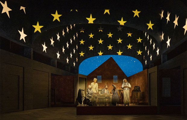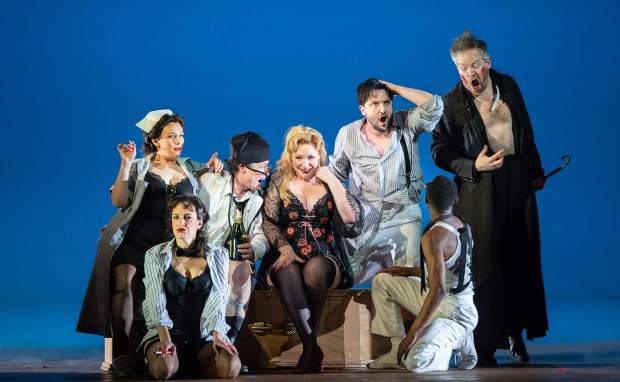 When Alden’s Grimes premièred at ENO in 2009, Laurent Pelly’s staging of L’elisir d’amore was midway through its second revival at Covent Garden, and by some curious alignment of the stars it’s on again now. Back then, Michael Tanner wondered ‘how a comedy can be so relentlessly good-natured without being annoying’, but after a decade of cynicism a sunny operatic romcom about basically nice people feels almost like a radical statement. Pelly’s 1970s Italian village, with its hay bales, Vespa scooters and canine cameos (can’t go wrong with an onstage mutt), is still attractive and conductor Sesto Quatrini gives a rustic, earthy undertone to a generally stylish account of the score.