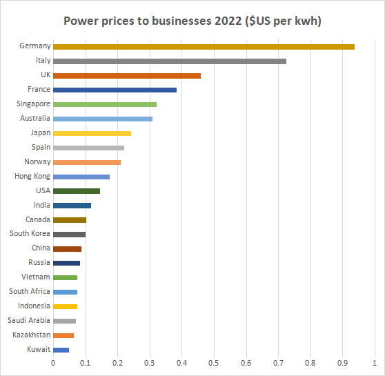 The outcome has seen Australia being transformed from its former position of enjoying very low-cost energy supply. Australian electricity prices are now twice those of China, Russia and Vietnam and much dearer than other nations following us down the climate energy wormhole, like Canada, the US, and Korea.