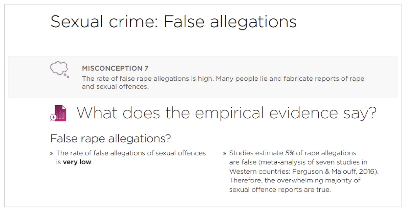Look at this extract from a fact sheet giving the Victorian Police’s advice on misconceptions about sexual offending: