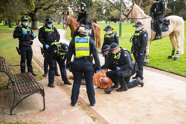 Australia provoked international incredulity at the brutality of its authoritarian measures to ‘crush and kill the virus’. The defining image of the pandemic state of siege in Australia will remain the case of Zoe Buhler, the pregnant mum handcuffed in her lounge room in front of her children. The episode is the very definition of a police state. Having crossed that Rubicon, how do we walk Australia back? A good start would be criminal prosecution of cops executing dictatorial edicts and of the officers and ministers authorising such action.