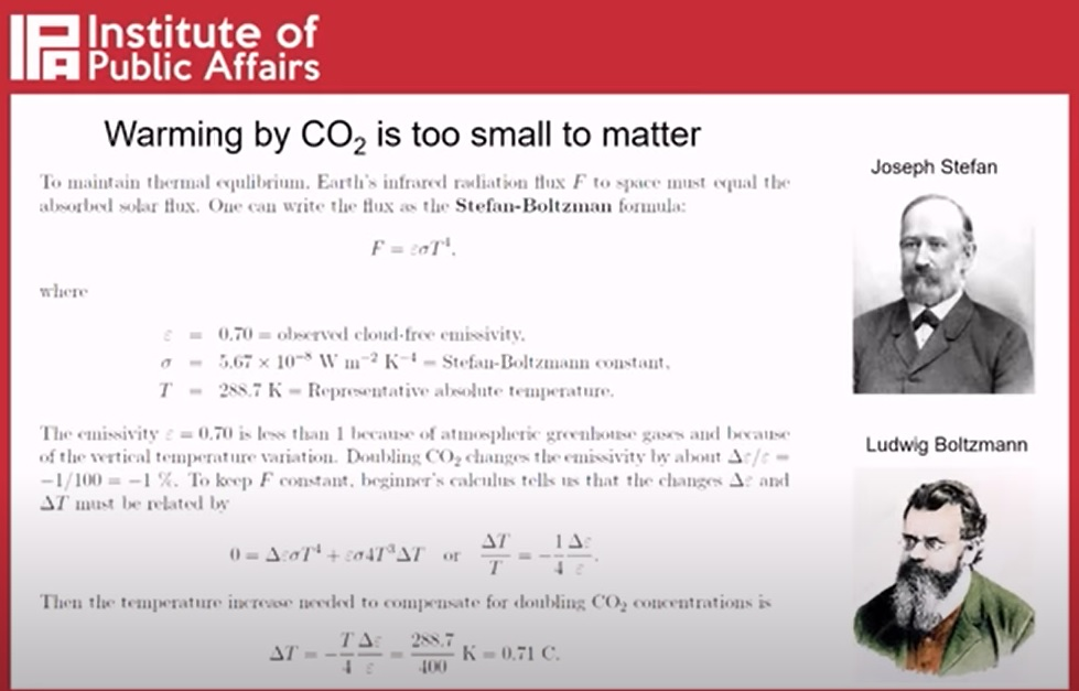 Stefan-Boltzman equation from Prof. Happer’s slide show
