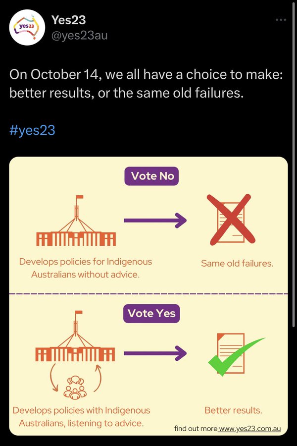 The first major incident from the Yes23 campaign featured a Twitter graphic that displayed a meme with ‘Vote No’ using an ‘X’ and ‘Vote Yes’ with a ‘tick’. This occurred after it was established, amid press controversy, that an ‘X’ would not be counted as a valid ballot while a ‘tick’ would.
