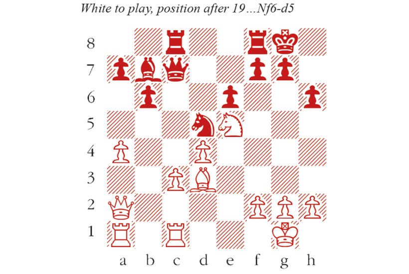 1 d4 d5 2 c4 c6 3 Nf3 Nf6 4 Nc3 e6 5 Bg5 Nbd7 6 e3 Qa5 7 Nd2 Bb4 8 Qc2 dxc4 The Cambridge Springs variation of the Queen’s Gambit Declined, signified by 6…Qa5, contains an amusing opening trap if Black chooses the immediate 8…O-O here: 9 Bd3 dxc4! wins a piece, as the Qa5 attacks Bg5, and 10 Bxf6 cxd3! wins material. 9 Bxf6 Nxf6 10 Nxc4 Qc7 11 Bd3 c5 12 a3 Bxc3+ 13 bxc3 b6 14 Ne5 O-O 15 O-O Bb7 16 Rfc1 h6 17 a4 Rac8 18 Qa2 cxd4 This capture is well timed. White would sooner recapture with the c-pawn, but the Rc1 is hanging. 19 exd4 Nd5 (see diagram) An excellent move, since after the exchange which follows the central White pawn duo becomes more vulnerable to attack. 20 c4 Nb4 21 Qd2 Nxd3 22 Qxd3 Rfd8 23 Rc3 Rd6 24 Rd1 Rcd8 25 Qe3 Qe7 26 f4 f6 27 Ng4 h5 28 Nf2 Qd7 29 Qe2 29 Rcd3 Qxa4 is no better. Qc6 It was safe to grab the pawn immediately, as 29…Rxd4 30 Rxd4 Qxd4 31 Rd3 Qa1+ wins. But Sivanandan’s move aims to win the pawn while maintaining complete control of the central open file. 30 Rg3 h4 31 Rg4 Rxd4 32 Rxd4 Rxd4 33 h3 Rxf4 34 Rg6 Qxc4 35 Qd2 Kf7 36 Rg4 Rxg4 37 Nxg4 Qxa4 38 Qd6 Qc6 39 Qd2 a5 40 Qf2 Qc5 41 Ne3 a4 42 Nc2 Qxf2+ 43 Kxf2 b5 44 Ke3 Bxg2 White resigns