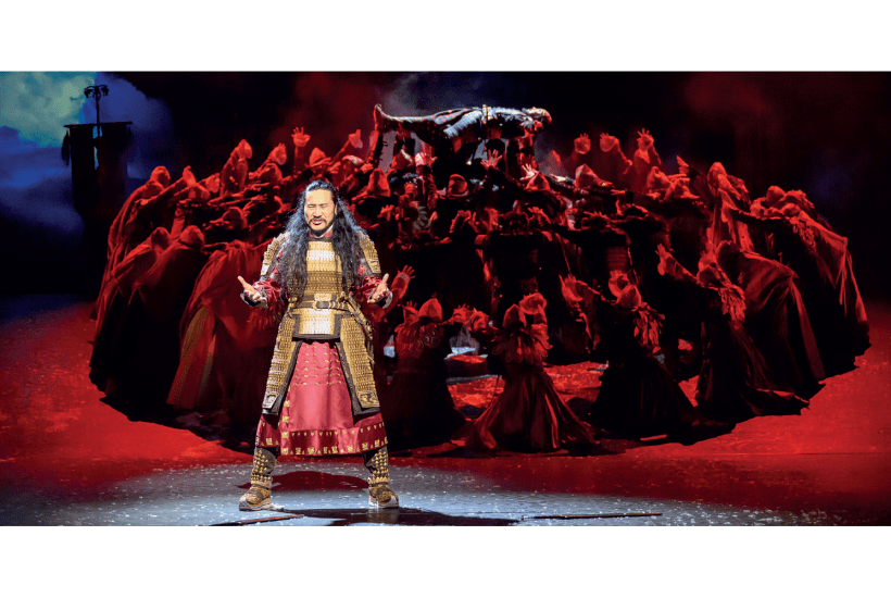 It is based on a 1998 play by Lkhagvasuren Bavuu, the ‘People’s Writer of Mongolia’, about a violent dynastic struggle among the Hunnic tribes that flourished, mythically at least, around the beginning of the Christian era. The passages of dialogue we hear, adapted for London by Timberlake Wertenbaker and surtitled, are played out in Mongolian and enacted by native actors in flamboyantly semaphored style, but a plot revolving round babies swapped at birth and vengeful psychopaths roaring their heads off is frankly not that engaging. The pre-recorded music is a horrible mix of bang, clatter and kitsch.