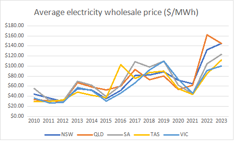 Just to confirm that ‘one swallow a summer does not make’, the average 2023 price was around $120. That’s three times its level in 2015, which is the year before it became evident that the subsidies to renewables – now costing over $10 billion a year – had destroyed Australia’s low-cost coal-based electricity supply.