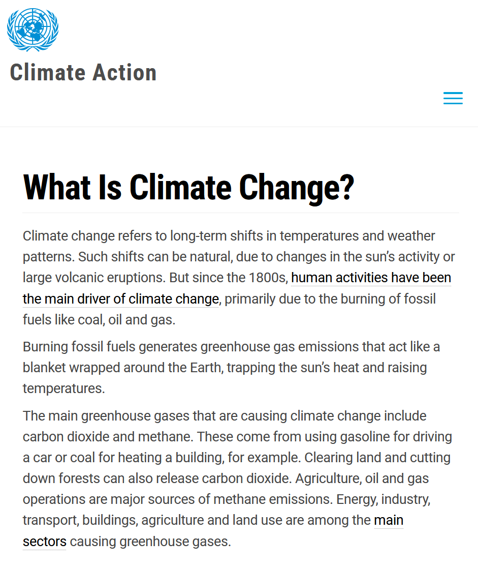 In a cynical appeal to authority, the message comes up under the heading of ‘Climate Action’ – which is a political, not a scientific position.