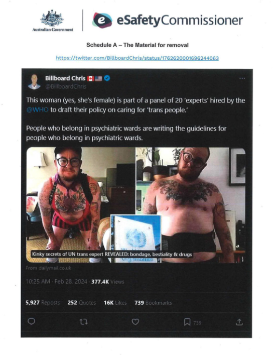 Acting on the complaint in late March, the e-Safety Department told Twitter to remove the ‘harmful’ post, citing Section 88 of the Online Safety Act 2021.