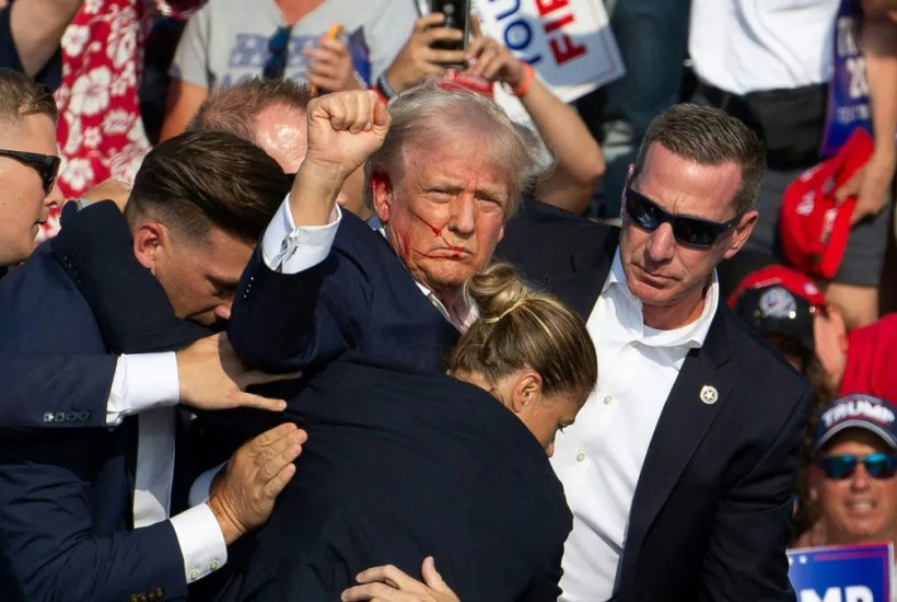 I guess someone was paying attention. Shortly after 6 p.m. ET last night, just minutes after Donald Trump took the stage at a rally in Butler, Pennsylvania, several shots rang out. One person was killed, two were seriously wounded. The real target, of course, was the former president. He escaped with a flesh wound to the top of his right ear. Images of a defiant Trump, bloodied but waving his fist in the air as he was shuttled off stage by a gaggle of Secret Service agents, have flooded the internet. Exactly why it was that the Secret Service failed to pick up a rooftop shooter a mere 150 yards away is a question that many will be asking.