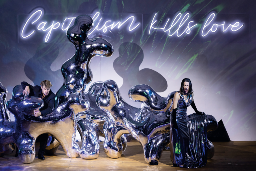 Obviously, there’s no such trio in The Marriage of Figaro. It had been prised from Cosi fan tutte and shoehorned into the antics chez Almaviva: one of several dream sequences inserted by Serebrennikov in pursuit of his hard-hitting thesis – articulated through a neon-lit slogan at the back of the set – that ‘Capitalism Kills Love’. Bold stuff; so shocking that the Edinburgh audience (and it’s never been hard to distinguish between Edinburgh opera-goers and the Baader-Meinhof Group) had mostly been applauding with the utmost courtesy. Even – no, especially – when Cherubino (Georgy Kudrenko) pulled off his Y-fronts and leaped, butt-naked, out of the window.