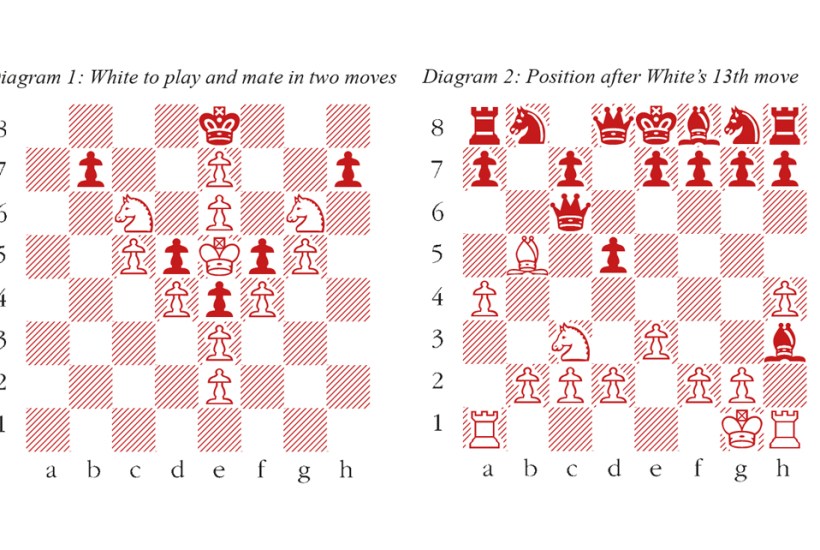 The second diagram shows a ‘proof game’, presented as a problem in Riga, and composed by Markus Ott in 1983. The diagram shows the position after white’s 13th move, and the task is simply to deduce all the moves from the start position up to the diagram. This is well worth attempting, but harder than it looks, although evidently, the pawn from b7 must have promoted to a queen. The solution reveals a very neat surprise.