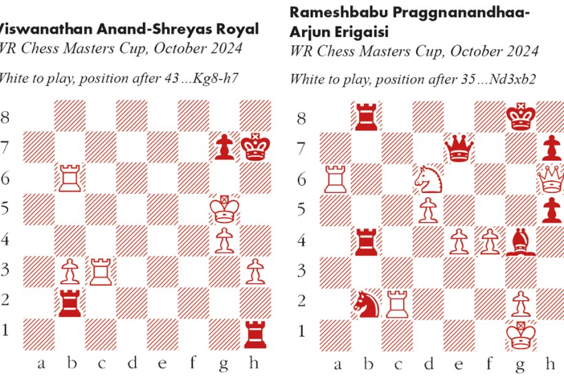 Shreyas Royal recently broke the record to become the UK’s youngest grandmaster at the age of 15 years and seven months. In the first round of the knockout, he faced former world champion Viswanathan Anand. With two extra pawns in the diagram below, one would expect Anand to comfortably notch up the win. But his next move 44 Rc7, aiming to capture on g7 and deliver mate, was based upon flawed reasoning.